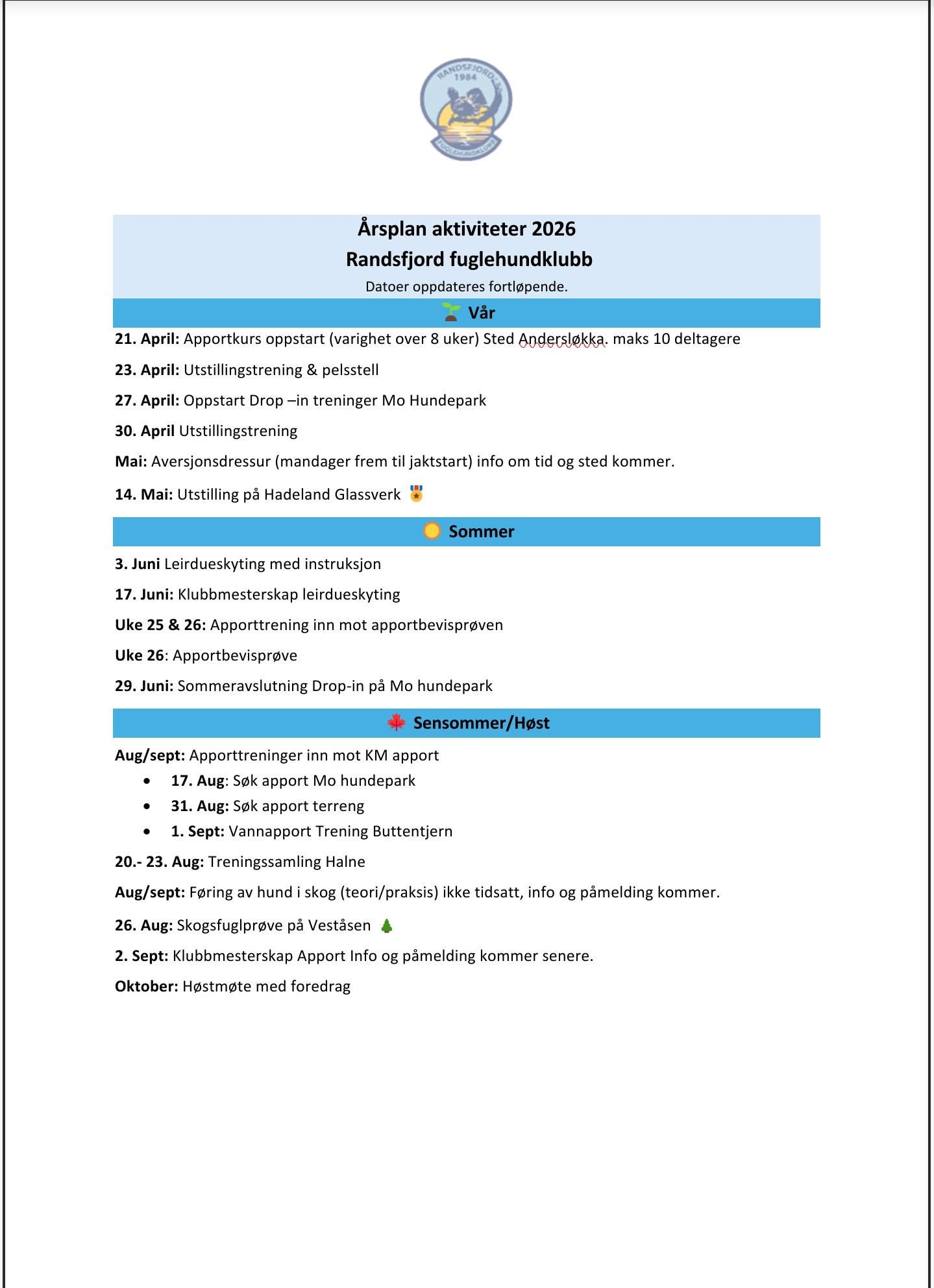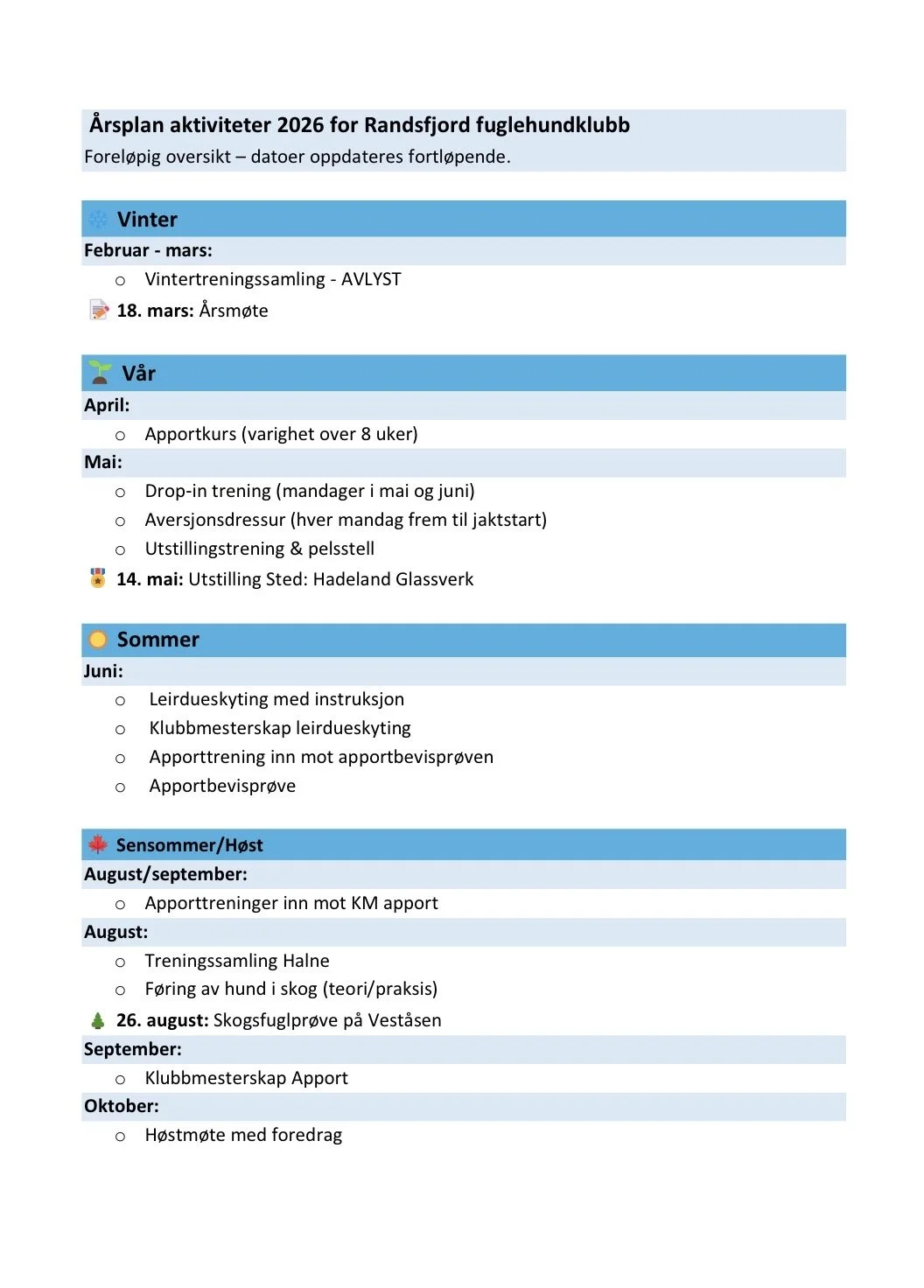 Det er med stor glede vi kan presentere den foreløpige årsplanen for aktiviteter i 2026 📆🎉😁 Årsplanen vil oppdateres fortløpende etter hvert som flere aktiviteter og datoer faller på plass.