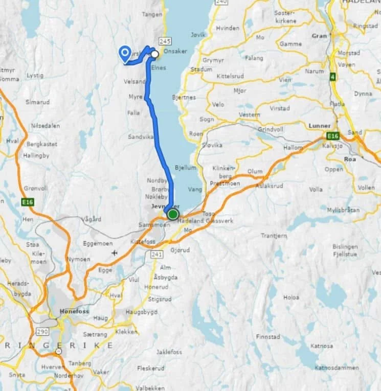 Adkomst fra riksveg 245, avkjøring ved Halvorsbøle Hotell, ca 12 km nord for Jevnaker sentrum.